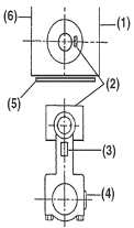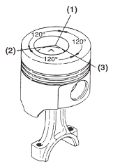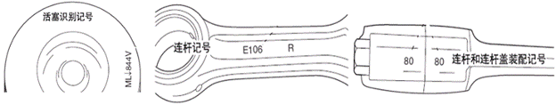 當(dāng)活塞裝配正確時,刻印在連桿頂部的標(biāo)識 會和刻印在連桿上連桿和連桿蓋的裝配記號處于同一側(cè)。(106T系列除外)