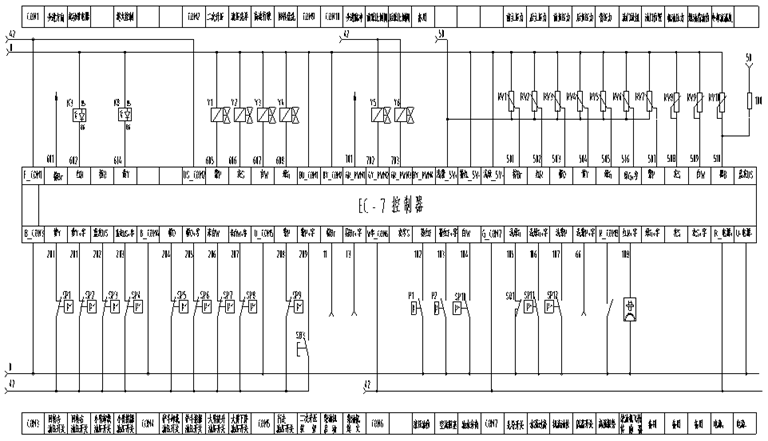 電控系統(tǒng):一臺EPS控制器或者一臺EC-7控制器,5個(gè)壓力傳感器、9個(gè)壓力開關(guān)、2個(gè)比例閥、4個(gè)電磁閥、1個(gè)步進(jìn)電機(jī)驅(qū)動器、1個(gè)油門旋鈕傳感器、1個(gè)油門位置傳感器、1個(gè)水溫傳感器、1個(gè)柴油油位傳感器、1個(gè)機(jī)油壓力傳感器、1個(gè)發(fā)動機(jī)轉(zhuǎn)速傳感器(脈沖量)。其中EC-7控制器包含一塊EC-7綜合轉(zhuǎn)換板,實(shí)現(xiàn)通信規(guī)約轉(zhuǎn)換、發(fā)動機(jī)頻率匹配等功能。