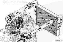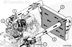 大部分康明斯ISF3.8 CM2220發(fā)動機(jī)采用了底盤安裝的空-空中冷器,以改進(jìn)發(fā)動機(jī)性能并降低排放。本系統(tǒng)也使用大直徑管道將空氣從發(fā)動機(jī)渦輪增壓器輸送到空-空中冷器,然后將空-空中冷器的空氣返回到發(fā)動機(jī)進(jìn)氣歧管。