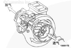 康明斯ISF3.8 CM2220發(fā)動機(jī)渦輪增壓器利用排氣能量轉(zhuǎn)動渦輪葉輪。渦輪葉輪驅(qū)動壓縮機(jī)葉輪,向發(fā)動機(jī)提供用于燃燒的加壓空氣。渦輪增壓器額外提供的空氣使更多的燃油可以噴射,從而提高發(fā)動機(jī)的功率輸出。
