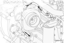 注: 充足并經(jīng)過過濾的優(yōu)質(zhì)機(jī)油對于渦輪增壓器的使用壽命非常重要。確保使用優(yōu)質(zhì)的機(jī)油并且按照維護(hù)保養(yǎng)建議更換機(jī)油和機(jī)油濾清器。參考相應(yīng)的操作和維護(hù)保養(yǎng)手冊或者用戶手冊了解正在維修的發(fā)動機(jī)。
