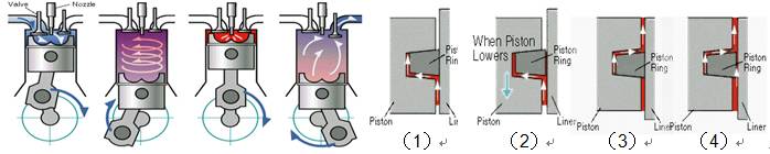往復活塞式發(fā)動機運轉時活塞環(huán)會出現(xiàn)“泵油”現(xiàn)象,雖然現(xiàn)階段的發(fā)動機活塞環(huán)采用的“梯形環(huán)”和“扭曲環(huán)”可減少泵油現(xiàn)象,但不可避免的仍然會有少量的機油進入到燃燒室內參與燃燒。