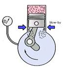 為了使發(fā)動機能夠正常運轉,曲軸箱內壓力不能超過一定的數(shù)值,通常采用的方法是通過管道把活塞環(huán)泄露的少量高溫燃氣通過“下排氣管”導入大氣當中或進入進氣管中,此時曲軸箱內的機油油霧將同時排到大氣當中或參與燃燒,致使有少量的機油消耗。