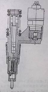 柱塞式高壓滑動油泵將壓力升高到4-23 Mpa泵入蓄壓總管,控制閥作用在加壓柱塞上,使加壓柱塞下面的小活塞能產(chǎn)生30-120 Mpa的噴油壓力由噴油嘴噴出。