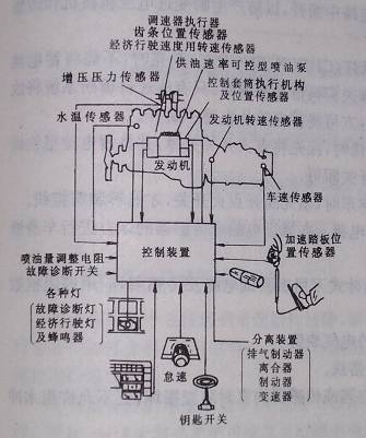 系統(tǒng)功能:預(yù)行程控制(供油速率、噴油提前角)噴油量控制,故障自診斷經(jīng)濟(jì)行程監(jiān)控,自動控制車輛經(jīng)濟(jì)速度行駛等。