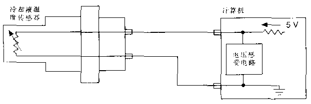 溫度傳感器的溫度電阻作為5V分壓電路的一部分,溫度傳感器的兩端與受壓電路相連接,當溫度傳感器的溫度電阻隨溫度發(fā)生變化時,受壓電路的電壓發(fā)生變化,該電壓被輸入到ECU接口電路的模數(shù)轉換電路。電壓與溫度之間的關系特性曲線被存儲在發(fā)動機的管理系統(tǒng)的ECU中。