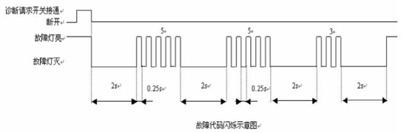 按下故障請(qǐng)求開關(guān),如ECU存有故障代碼,該燈將按設(shè)定的閃碼閃爍。
