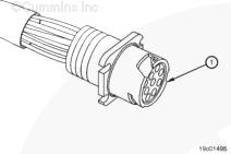 終端電阻器蓋 (1) 必須安裝在 OEM 主干線束插頭 (2) 的正確位置,以保持正確的通信。每個電阻器電阻為 120 歐姆,位于可拆卸的蓋內(nèi)。