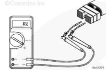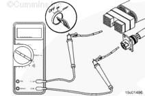 測量康明斯qsb5.9發(fā)動機 SAE J1939 數(shù)據(jù)通信接口(屏蔽)觸針(如果可用)與接頭上的所有其他觸針之間的電阻,每次測量一個觸針。萬用表必須顯示開路(100K 歐姆或更大)。
