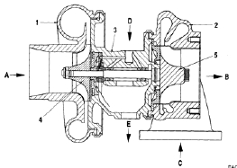 曲),利用非酸性溶劑清洗。必要時,可使用塑膠刮刀。如果葉輪片污染程度特別嚴(yán)重,可將葉輪片放入溶劑中,并利用硬刷擦洗。此時應(yīng)注意只浸泡葉輪片,不要利用葉輪片支撐渦輪增壓器,而應(yīng)利用軸承座支撐。
