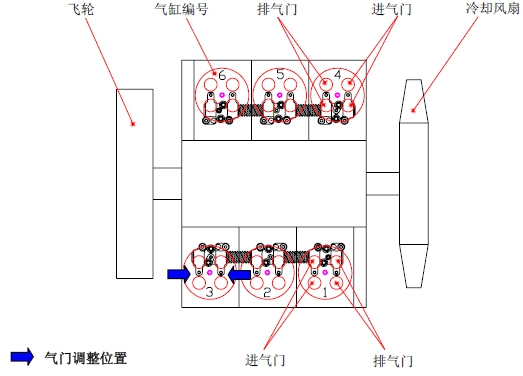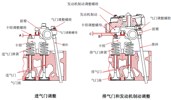 *當調(diào)整發(fā)動機制動從動活塞時,只調(diào)整相應(yīng)氣缸編號的排氣門。