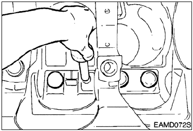 � 按氣缸號(hào)碼的順序排列活塞總成并在連桿和軸承蓋上安裝軸承。但是,小心不要互換連桿和軸承蓋的軸承。