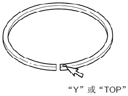 � 識(shí)別環(huán)底端的“Y”或“TOP”標(biāo)志,以免和活塞環(huán)頂部的位置顛倒,將有標(biāo)志的一端向上。(標(biāo)有“Y”或“TOP”的一面為上面。)
