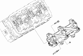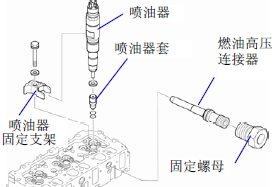 � 在共軌和燃油高壓連接器之間安裝燃油高壓管道,然后一個(gè)氣缸一個(gè)氣缸地緊固至規(guī)定扭矩。