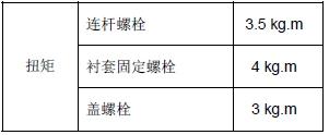 � 用機(jī)油涂抹連桿螺桿的螺旋部分和螺帽部分,涂到2~3 圈以后用指定的扳手?jǐn)Q緊(10kg.m+90°+10°)。