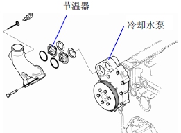 � 將節(jié)溫器同襯墊一起放入冷卻水泵內(nèi)。