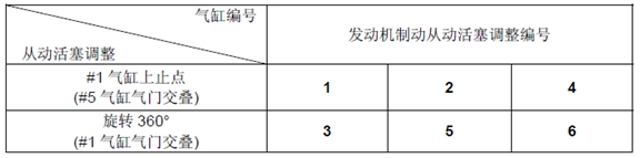 * 當(dāng)調(diào)整發(fā)動(dòng)機(jī)制動(dòng)從動(dòng)活塞時(shí),只調(diào)整相應(yīng)氣缸編號(hào)的排氣門(mén)。