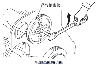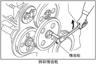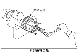 用齒輪拆卸器將曲軸齒輪從曲軸上拆出。