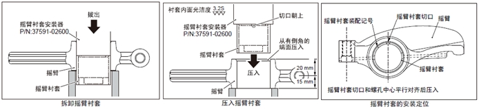 (2) 套筒A裝入心軸,套筒A的裝配記號(紅色刻線)對準(zhǔn)座臺(tái)的裝配記號(紅色刻線)后安裝在連桿襯套內(nèi)。