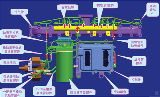油箱(燃油管路)-粗濾-輸油泵-精濾-高壓油泵-共軌管-噴油器