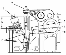 55±10N·m(41±7lbft)。A--單體噴油器的高度是從正時底座起進(jìn)行測量的。將單體噴油器的高度調(diào)整為