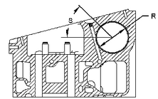 90.985±0.020mm(3.5821±0.0008in)。S--襯套接合處的方向是高于水平20±5度。---新缸蓋的厚度為
