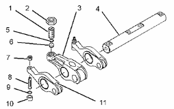 將調(diào)整螺釘 (8) 安裝到氣門(mén)搖臂 (11) 上。 把防松螺母 (7) 安裝到調(diào)整螺釘上。