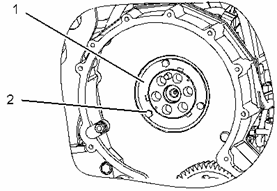 卸下螺栓 (2) 和止推盤(pán) (1) 。