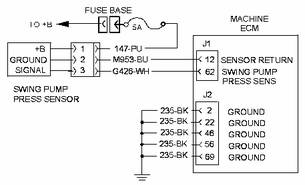 該診斷代碼與回轉(zhuǎn)泵壓力傳感器有關(guān)。 FMI 03 表示機(jī)器 ECM 已確定傳感器輸出信號電壓高于正常值。