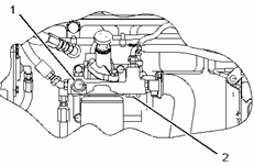 手動注油泵 (1)排氣螺釘 (2)燃油壓力調(diào)節(jié)閥 |