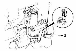 運行注油泵的同時打開燃油濾清器上的螺塞(1)。