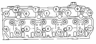 以如圖1中所示的相反順序卸下缸蓋螺栓。需要利用14mm加長套筒拆下編號12到15的螺栓。從發(fā)動機(jī)上拆下缸蓋。