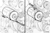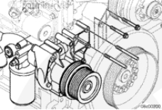 用兩根長(zhǎng)螺栓將制冷劑壓縮機(jī)支架安裝到齒輪室上。擰緊螺栓。