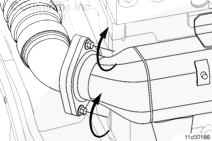 在 V 形帶箍的內(nèi)側(cè)涂一層高溫防粘結(jié)復(fù)合劑,以確保對(duì)帶箍適當(dāng)加載。在排氣歧管前部安裝 v 形帶箍。在與排氣歧管前部分連接的 EGR 冷卻器導(dǎo)引端安裝一個(gè)新的密封墊。將 EGR 冷卻器裝到機(jī)油冷卻器總成的雙頭螺柱上。