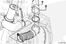 安裝 EGR 冷卻器冷卻液排氣管。將排氣管的剛性部分與 EGR 冷卻器相連,而將柔性部分與 EGR 冷卻器冷卻液回流管相連。
