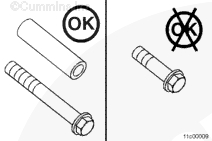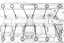 使用清潔的發(fā)動(dòng)機(jī)機(jī)油潤(rùn)滑所有水泵螺栓的螺紋和螺栓端頭底部。將水泵裝到康明斯ISX和QSX15發(fā)動(dòng)機(jī)上。安裝并用手指擰緊底部的兩個(gè)螺栓。