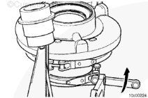 如果安裝新的渦輪增壓器,確保渦輪增壓器對正,松開壓縮機(jī)和渦輪 V 形帶箍,按需要進(jìn)行調(diào)整。擰緊 V 形帶箍。