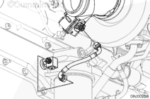 將渦輪增壓器執(zhí)行器冷卻液供應(yīng)管和回流管接頭安裝到電子執(zhí)行器內(nèi)。參考第 10 節(jié)中的步驟 010-041。