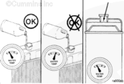必須正確加注冷卻系統(tǒng)以防出現(xiàn)氣穴,否則可能導(dǎo)致嚴(yán)重的發(fā)動機(jī)損壞。 |