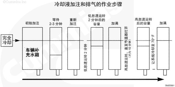 注: 請參考 OEM 維修手冊中有關(guān)冷卻液加注的特殊要求。這些特殊說明也可能標(biāo)在冷卻系統(tǒng)檢修點或車輛上的加注門附近。