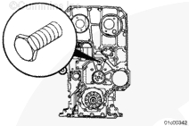 齒輪室的 1 號安裝位置鑄有 “Special Capscrew(專用螺釘)”字樣(參見插圖)。此螺釘必須是短頭螺釘,避免螺釘與惰輪接觸。