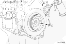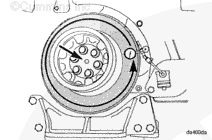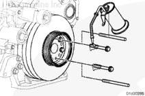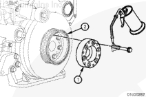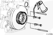 按圖示在齒輪室蓋上安裝一個(gè)千分表,測量減振器的偏心度(不圓度)。
