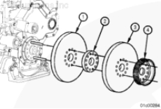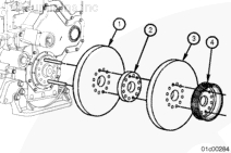在導(dǎo)向雙頭螺柱上安裝減振器 (1)、裝配隔圈 (2)、第 2 個(gè)減振器 (3) 和皮帶輪 (4)。