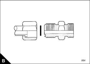 Examples of relevant fittings are shown (A): ‘O’ ring face s eal (A), 7 degree flare (A2) and plug with a
