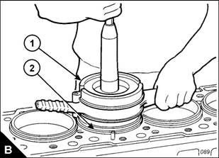 Use the special tool (B), GE5000 for 2806 engines or GE50045 for 206 engines , to install the piston and