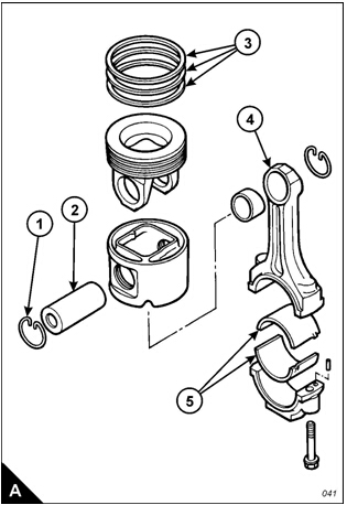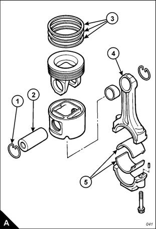 2 Remove the big-end bearing shells (A5) from the connecting rod (A4) and connecting rod cap. If the bearings