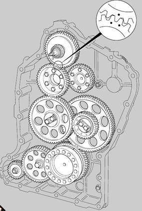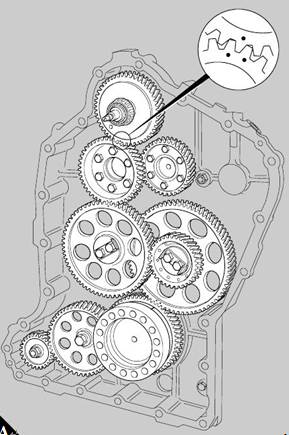 clearances are set. The teeth of the timing gears are