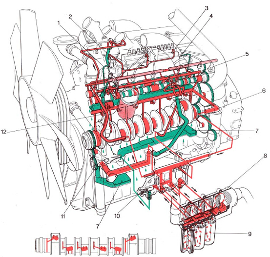 of the crankcase. From the heat exchanger the oil