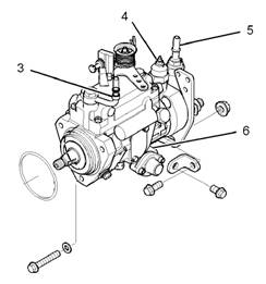 注:必須擰緊螺釘(5),以防噴油泵的軸發(fā)生轉(zhuǎn)動(dòng)。從發(fā)動(dòng)機(jī)上卸下噴油泵后不能使噴油泵的軸轉(zhuǎn)動(dòng)。