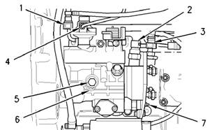 注:為了便于安裝,請(qǐng)?jiān)谒熊浌芙M件和管組件上作識(shí)別標(biāo)記。斷開后,用合適的塑料塞堵住所有燃油軟管組件和所有管組件。還要在噴油泵的所有接頭上安裝防塵蓋。這將有助于防止液體泄漏和有助于防止污染物進(jìn)入系統(tǒng)。